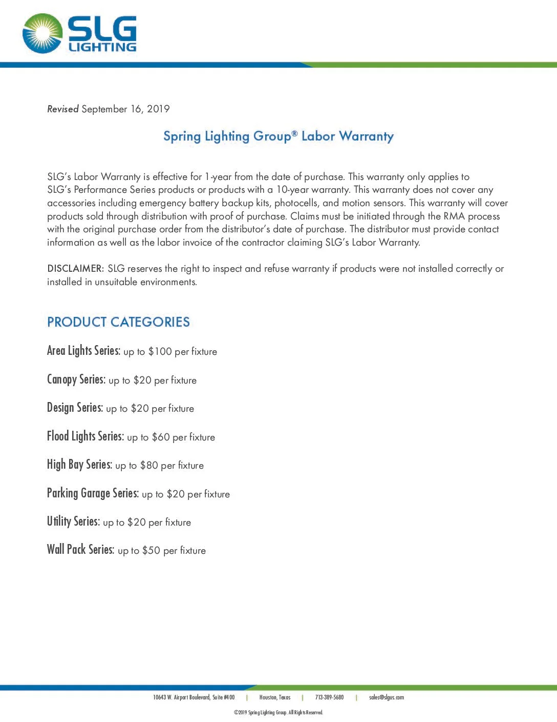 SLG Labor Warranty Document